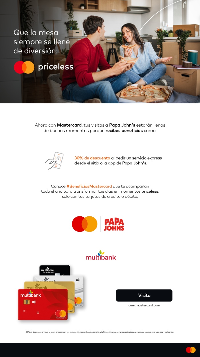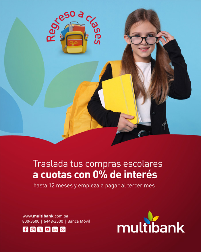 Promoción válida del 14 al 28 de febrero de 2025. Realiza la compra con tu Tarjeta de Crédito Multibank y luego solicita el traslado a Multicuotas a través de nuestros canales de atención o mediante el botón convertir de esta comunicación, los plazos a escoger son 0% de interés en plazos de 6, 9 y 12 meses o 0.75% de interés mensual en plazos de 18, 24 y 36 meses. La tarjeta de crédito debe estar activa, sin ningún tipo de bloqueo, ni sobregiros, máximo un 70% del disponible. No aplica compras en lotería y casino. Aplica cargo administrativo del 3% del monto del traslado. La primera cuota de su financiamiento en cuotas se verá reflejada en la tercera fecha de corte de su tarjeta de crédito después de hacer efectiva el traslado de compra a Multicuotas, y tendrá tiempo de pagarla hasta la fecha máxima de pago los días 5 de cada mes. Los productos y servicios obtenidos son responsabilidad única y exclusiva del comercio que los ofrece. Multibank participa exclusivamente como medio de pago, por lo que no es responsable por la calidad de los productos y servicios adquiridos. No aplica Tarjeta Visa Empresarial, Visa Débito, no aplica en otras promociones. Para más información comunicarse a nuestros canales de atención 800-3500 o al 6448-3500 (WhatsApp).